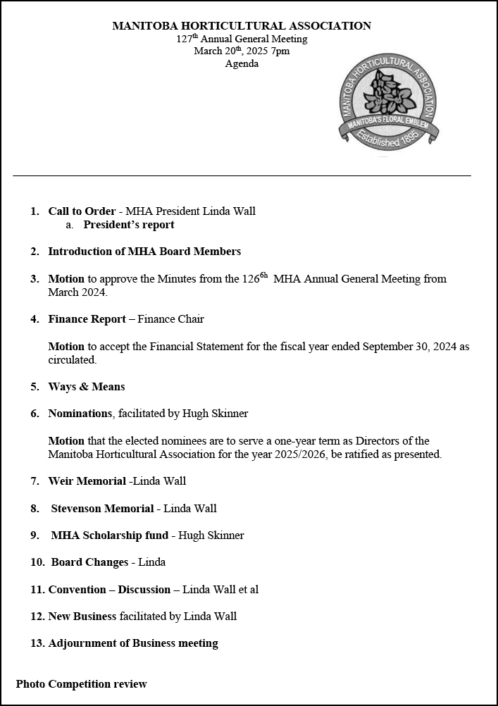 Overall, the AGM was a positive and engaging event, reflecting the strength and enthusiasm of our membership. With new leadership on the horizon, creative traditions upheld, and fellowship enjoyed, the St. James Horticultural Society looks forward to another year of growth and celebration.