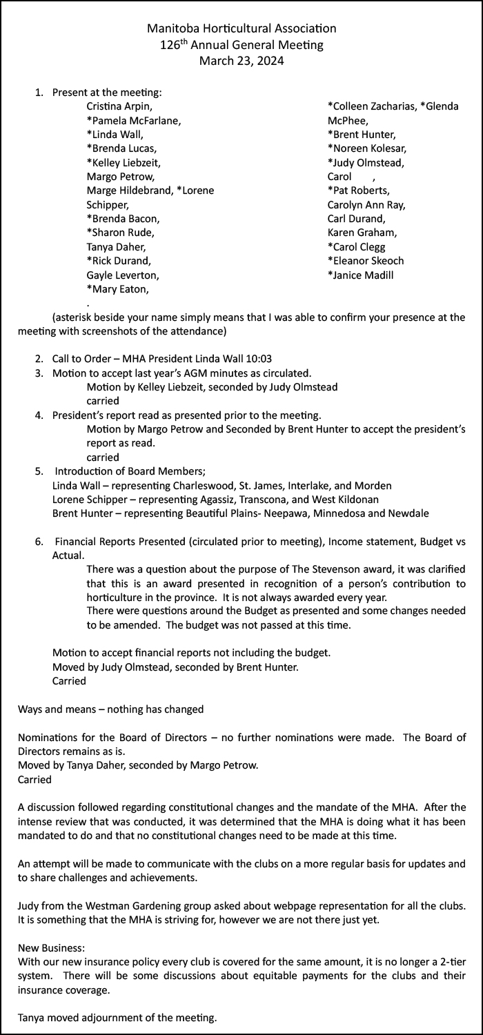The St. James Horticultural Society gathered for its Annual General Meeting in a warm and welcoming atmosphere, with members coming together to celebrate another successful year of gardening, community, and friendship.