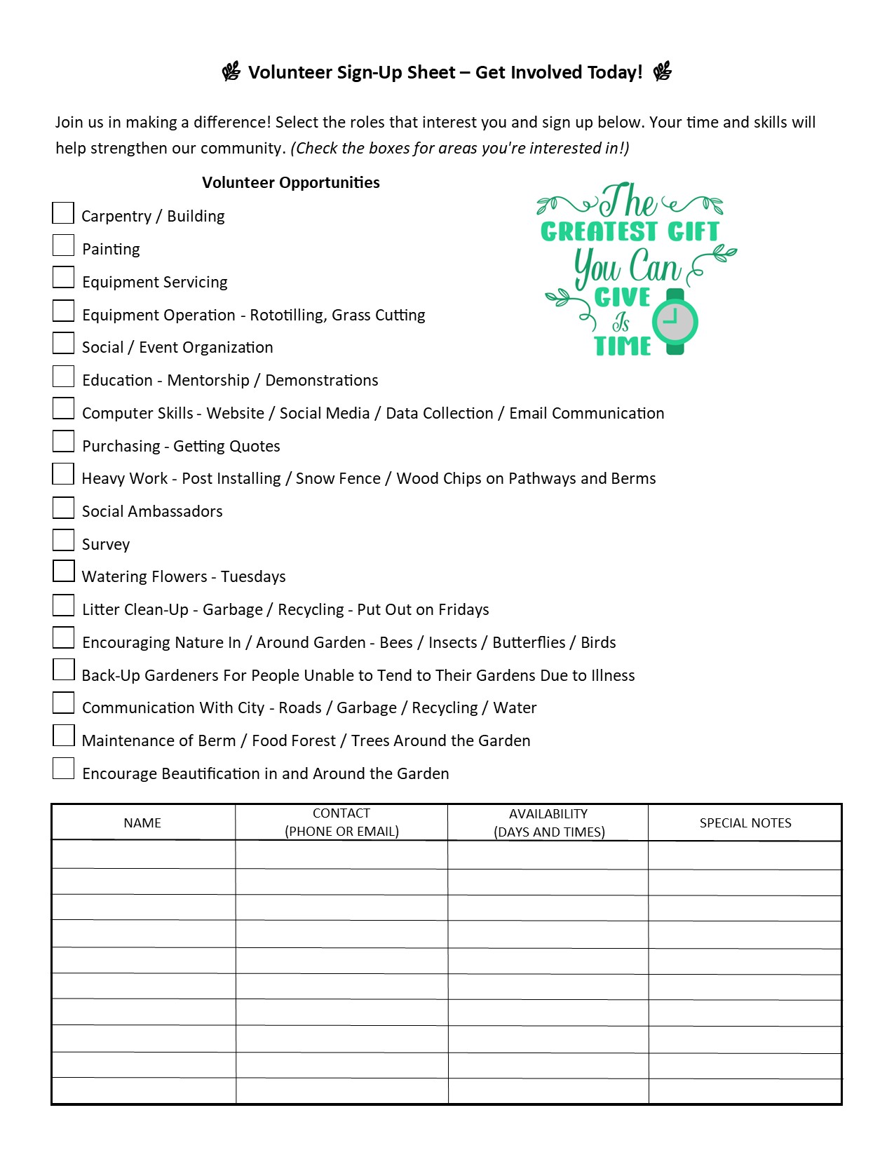 To get your name on the volunteer list please email stjameshortgardeners@gmail.com